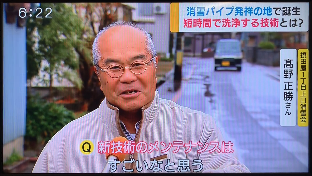 世界初の消雪パイプ洗浄技術